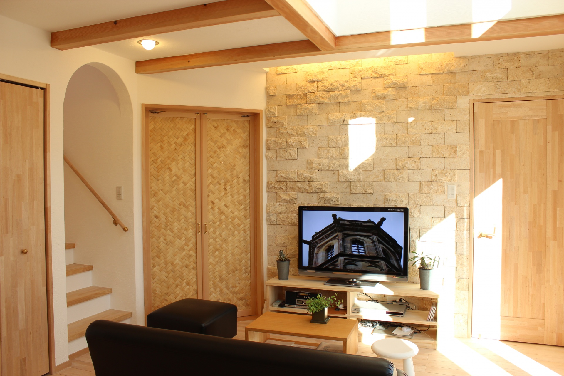 自然素材で作られた家が欲しくて沢山の住宅メーカーを見学しました。どこの家も壁紙を張るために接着剤の匂いが気になり嫌悪感があったそうです。