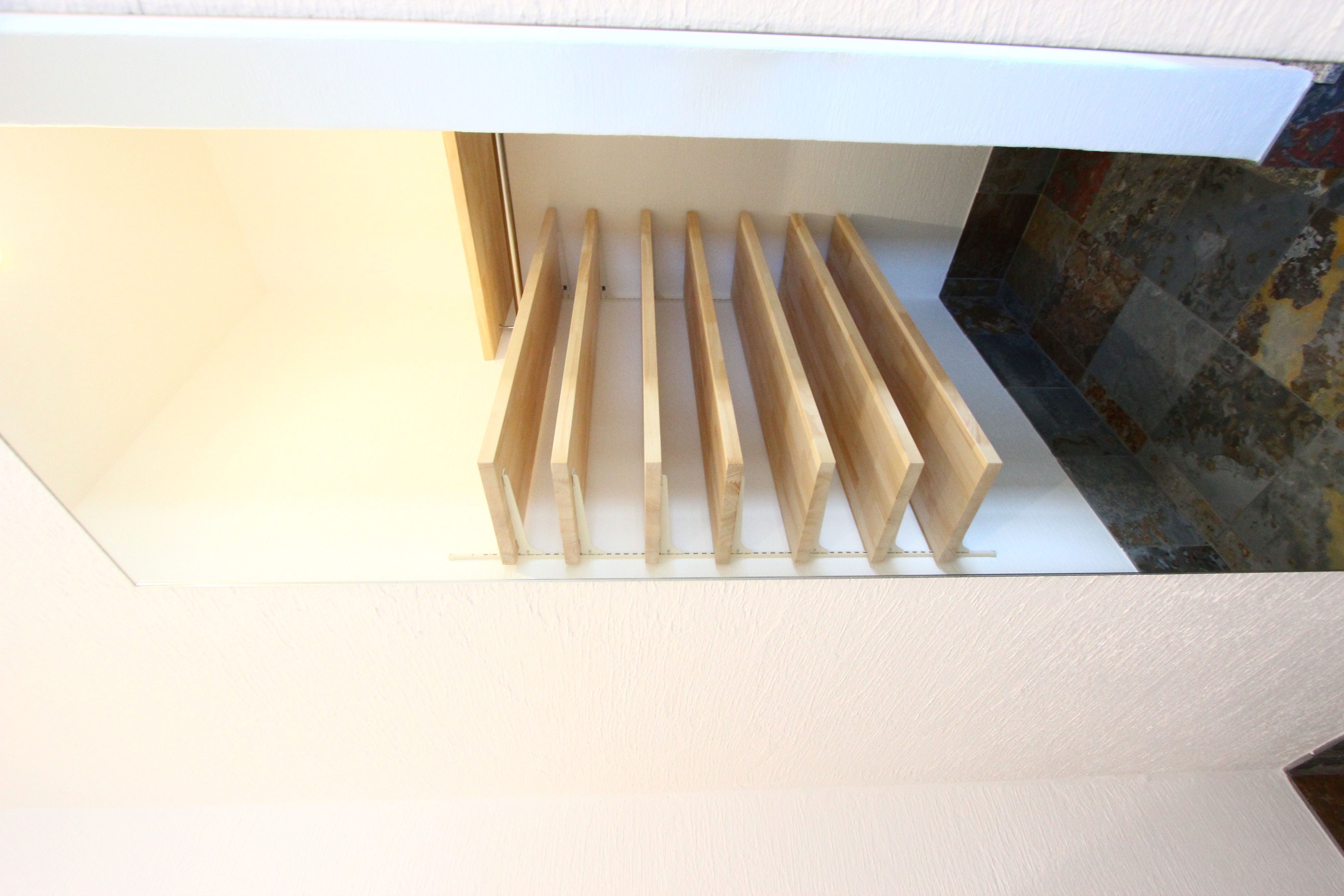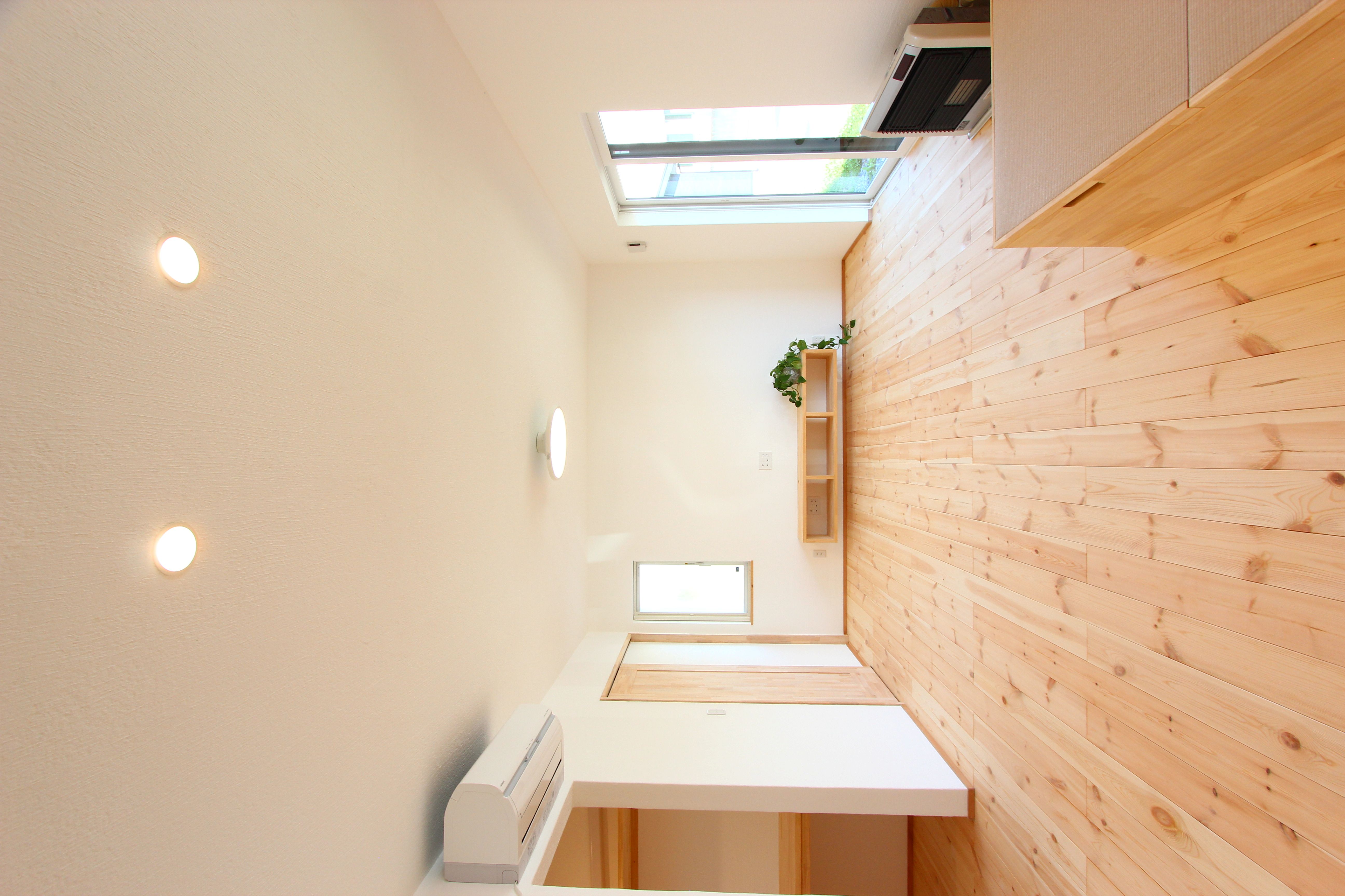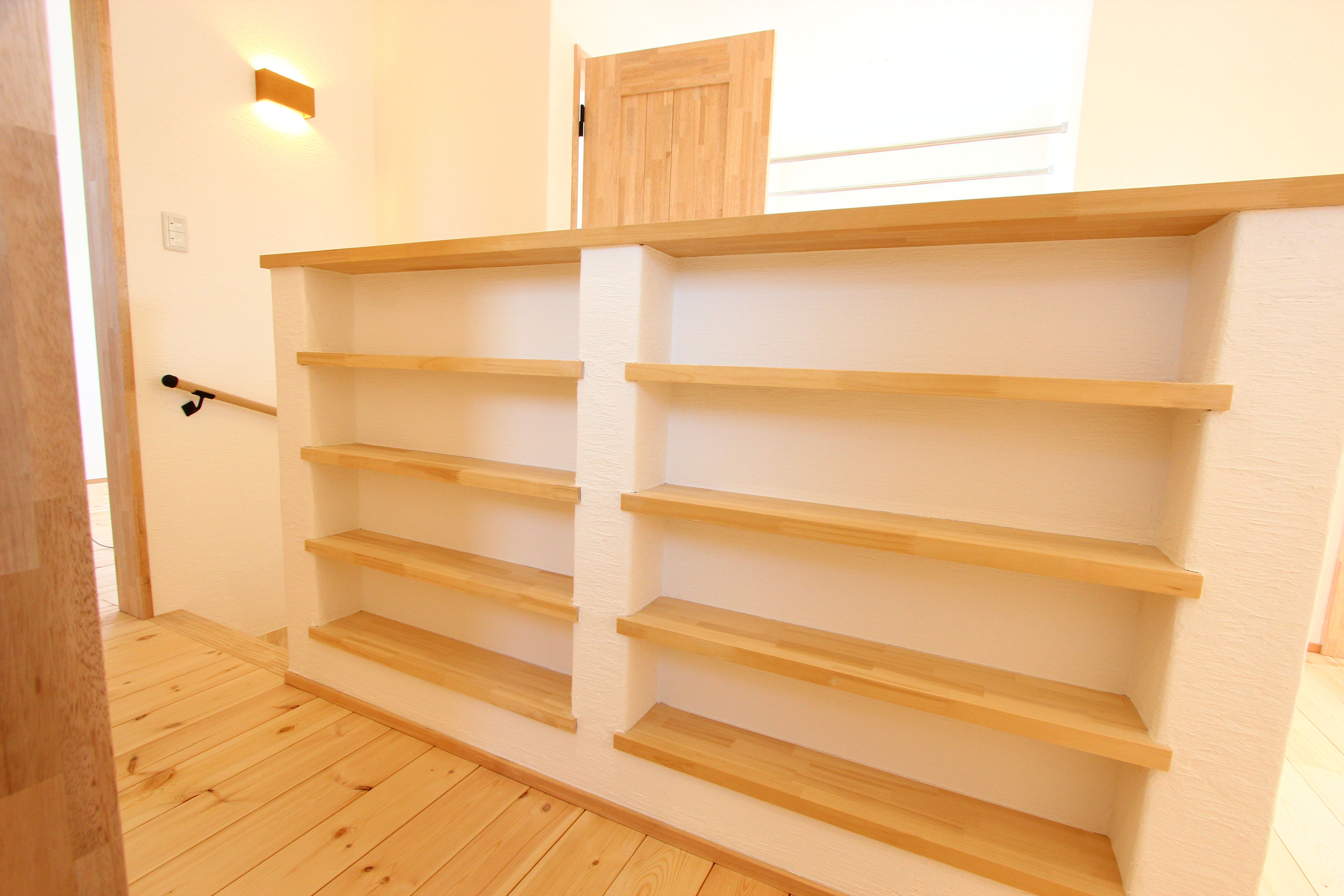 ちょっとした壁を収納にできるのも、漆喰壁の醍醐味です!たくさんの本が収納できます!