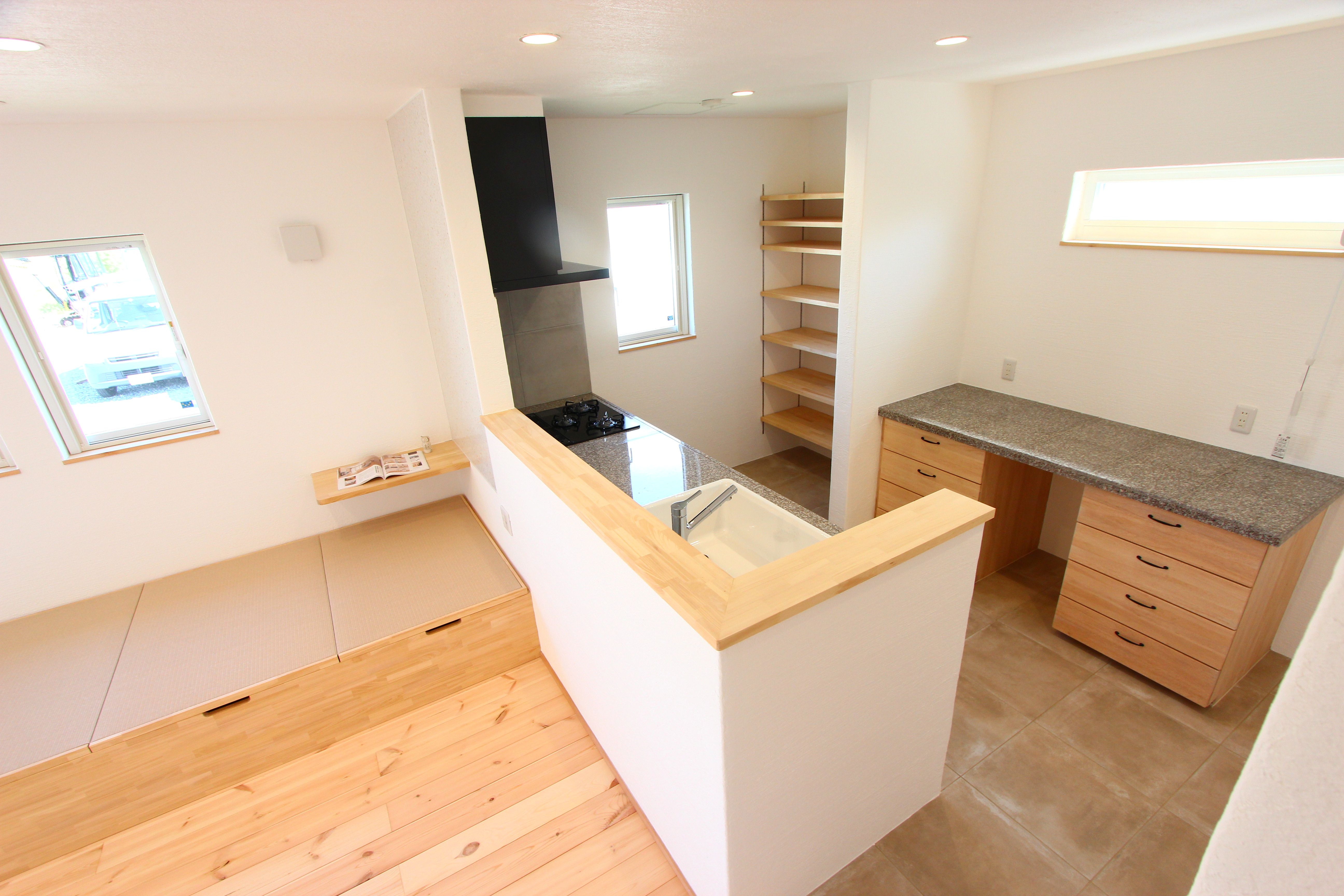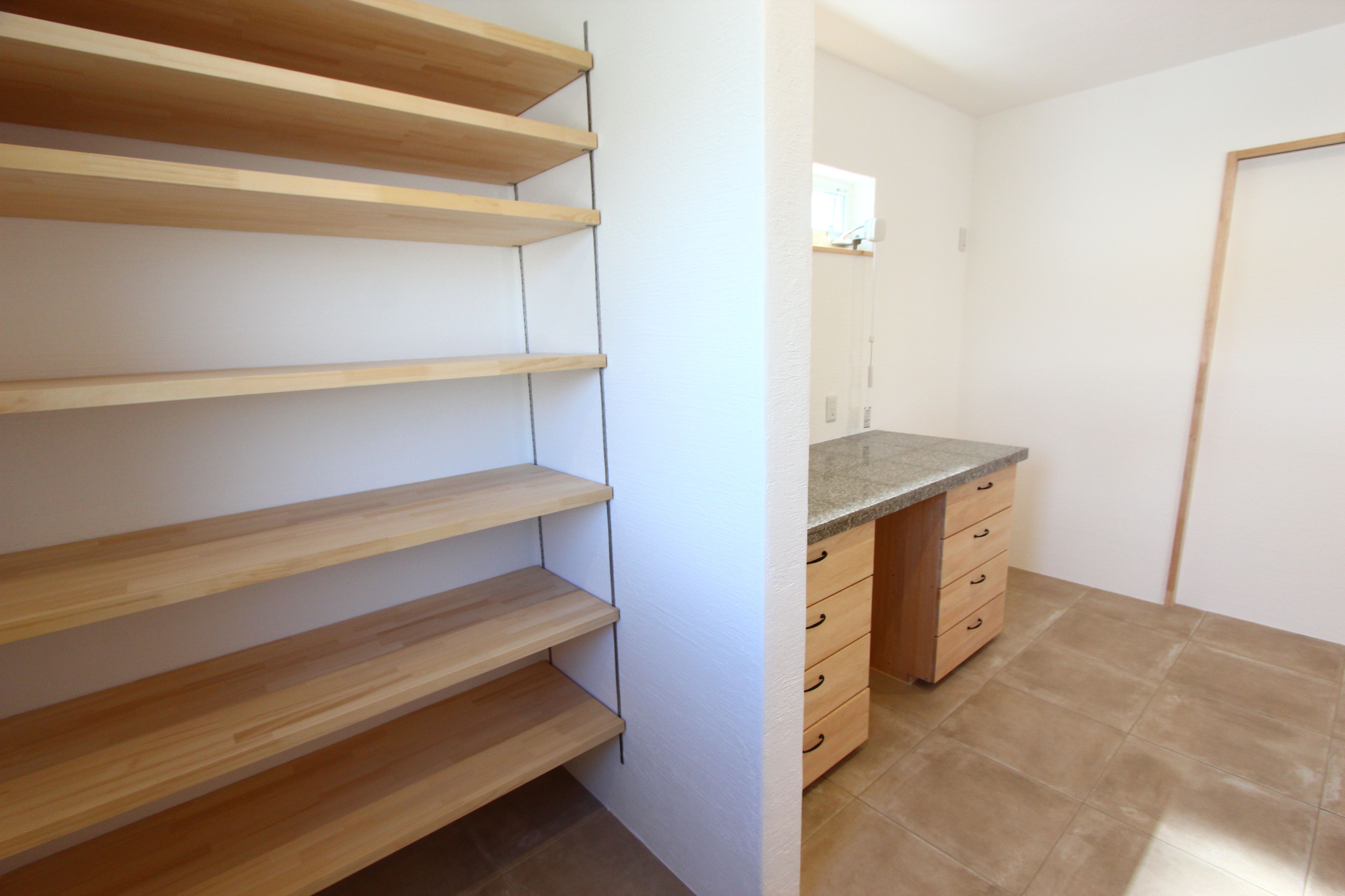 リビングから収納へ、そして水廻りへ。ぐるぐる回遊してキッチンに戻ってきます。お施主様はこの回遊をつかって、息子さんと追いかけっこをしているとのことでした!