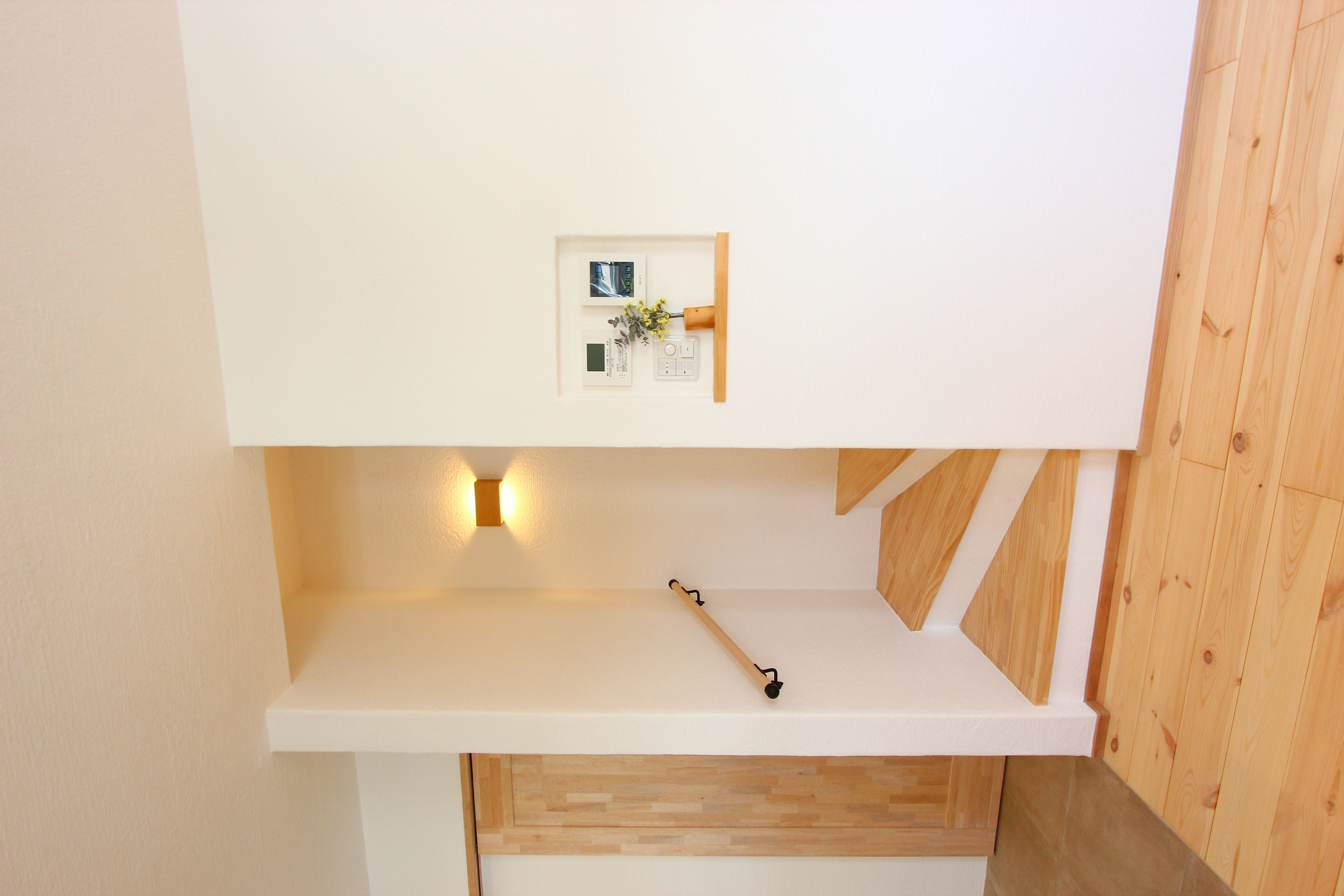 遊び心がある玄関ニッチ。アールが可愛いですね。中棚があるのも素敵です。