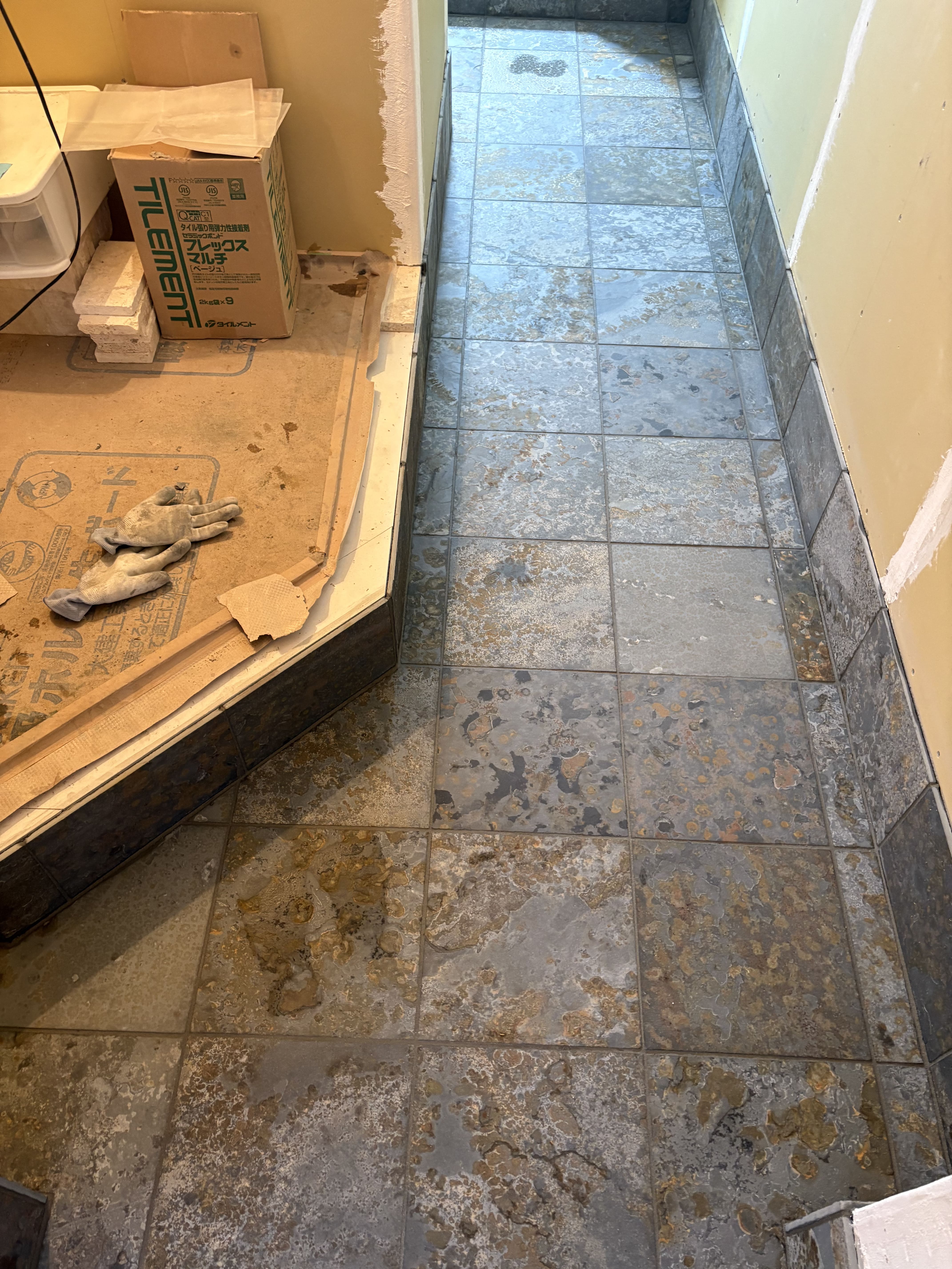 湿度が100%近い中漆喰を塗ってくれている左官職人さんと