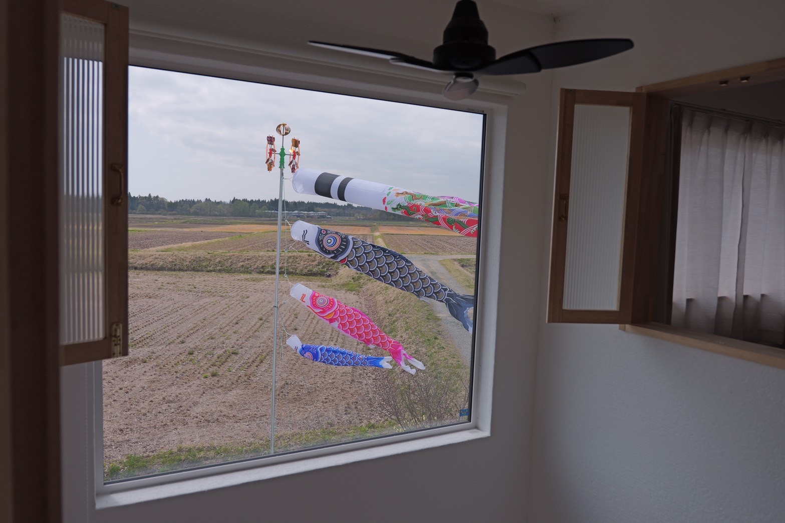 田園風景と、ゆらゆら泳ぐこいのぼり。