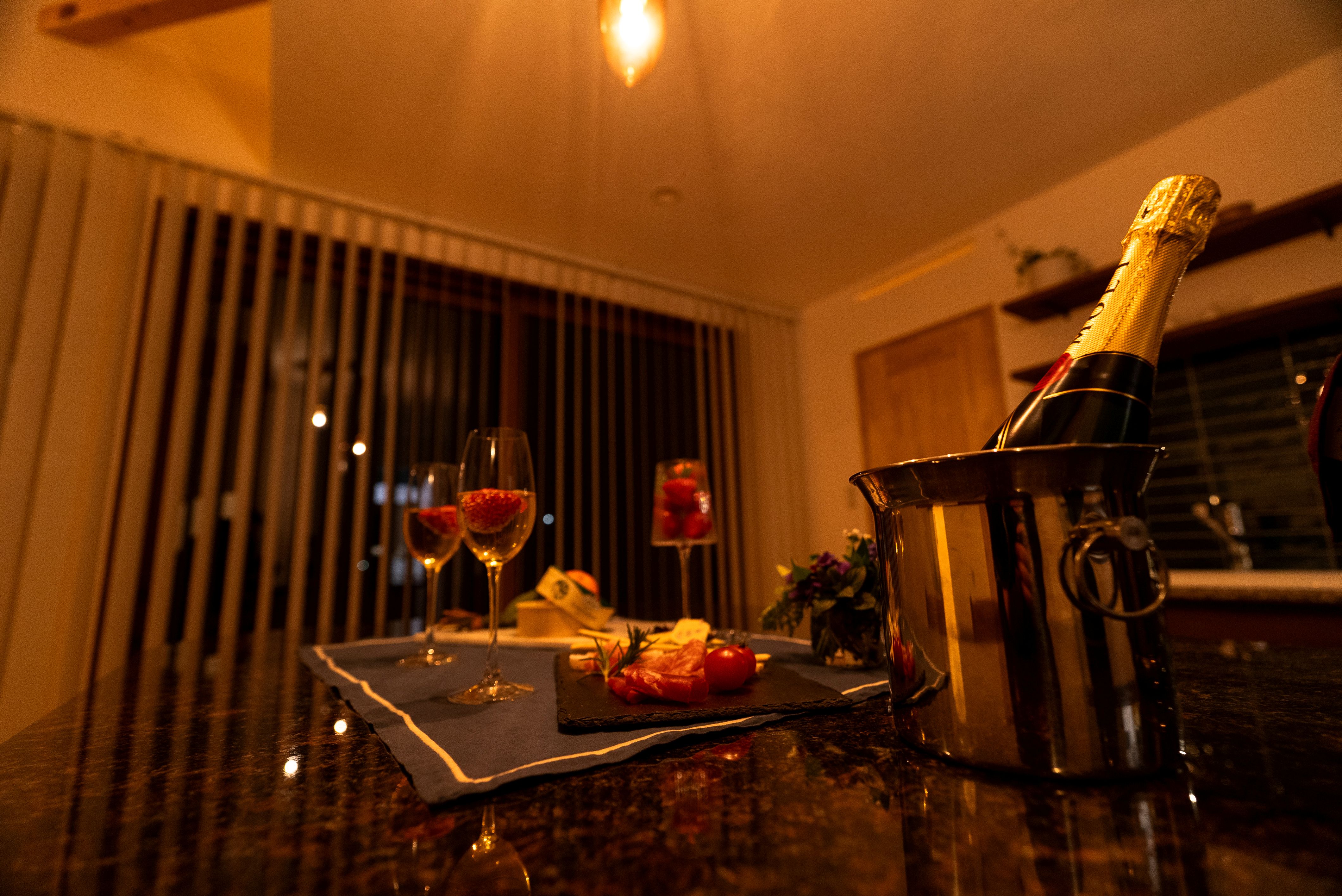 ちょっとしたテーブルがぴったり収まります。ちょっとした書き物や、パソコンコーナーとしても活躍します。