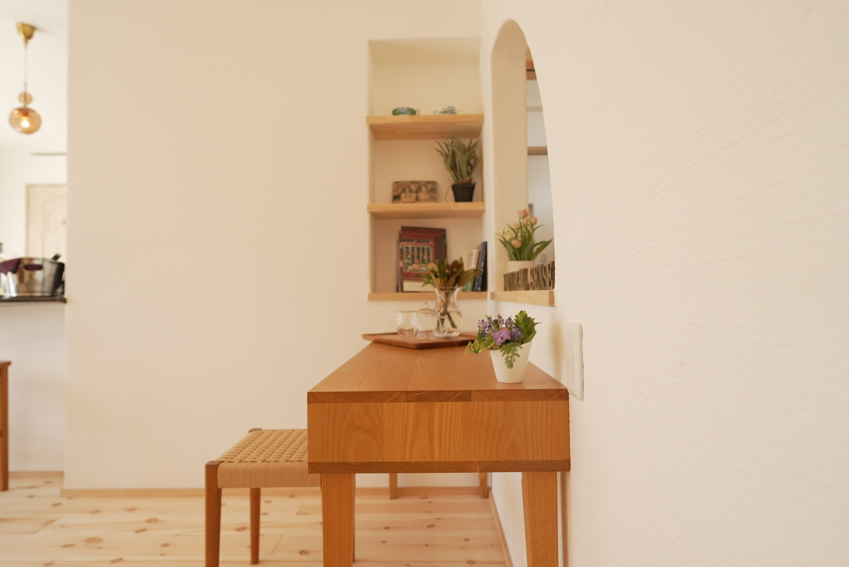リビングにニッチがあると、書類を置いたり写真を飾ったりできます。